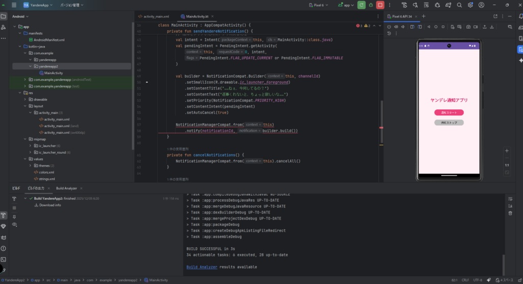 一旦適当にメンヘラ女から通知バンバン来るアプリをChatGPTに聞きながら作ってみている訳なんですが、